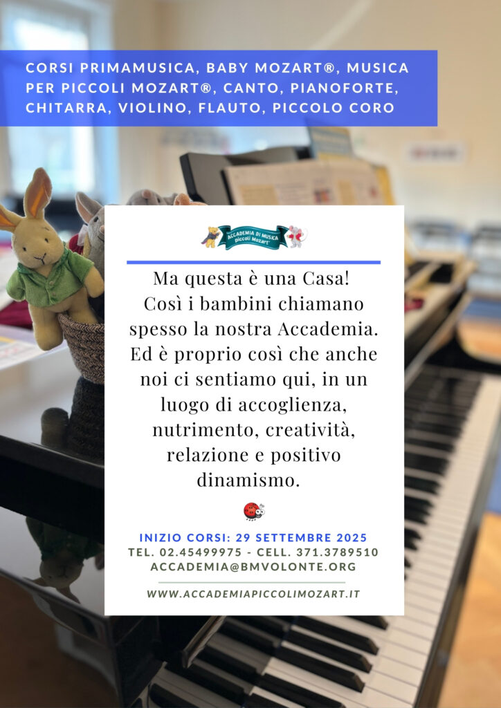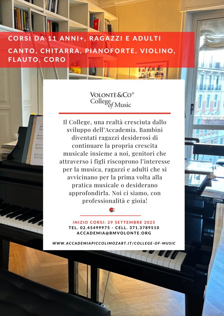 In due date: in Accademia, i concerti dei più piccoli, in una sede esterna i concerti dei bambini “più grandi” dell’Accademia e dei ragazzi del College! (nel 2023 nella Sala Amici del Loggione del Teatro alla Scala, nel 2024 nella sala piccola del Teatro Dal Verme)
